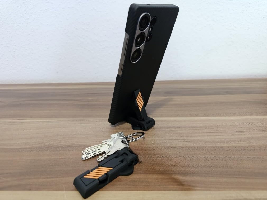 - DUAL FUNCTIONALITY: Compact 2-in-1 keychain accessory combines an instant mobile stand for hands-free viewing and an integrated emergency whistle for personal safety in one convenient device