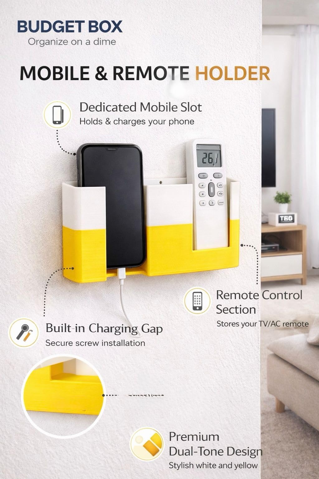 Be the first to review “Budget Box Mobile Holder (1, Yellow and White, Medium)”
