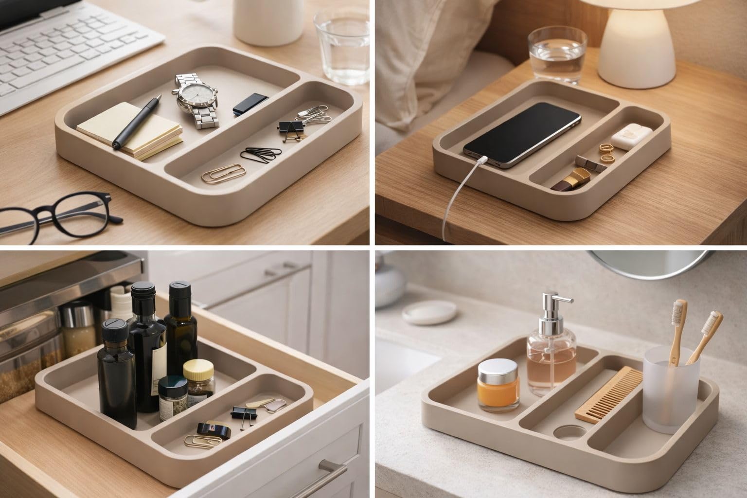 - INSTANT DECLUTTER SOLUTION: Keeps everyday essentials like keys, jewellery, coins, chargers, glasses, and remote controls organized in seconds, eliminating desk and table clutter whilst ensuring items are always within reach