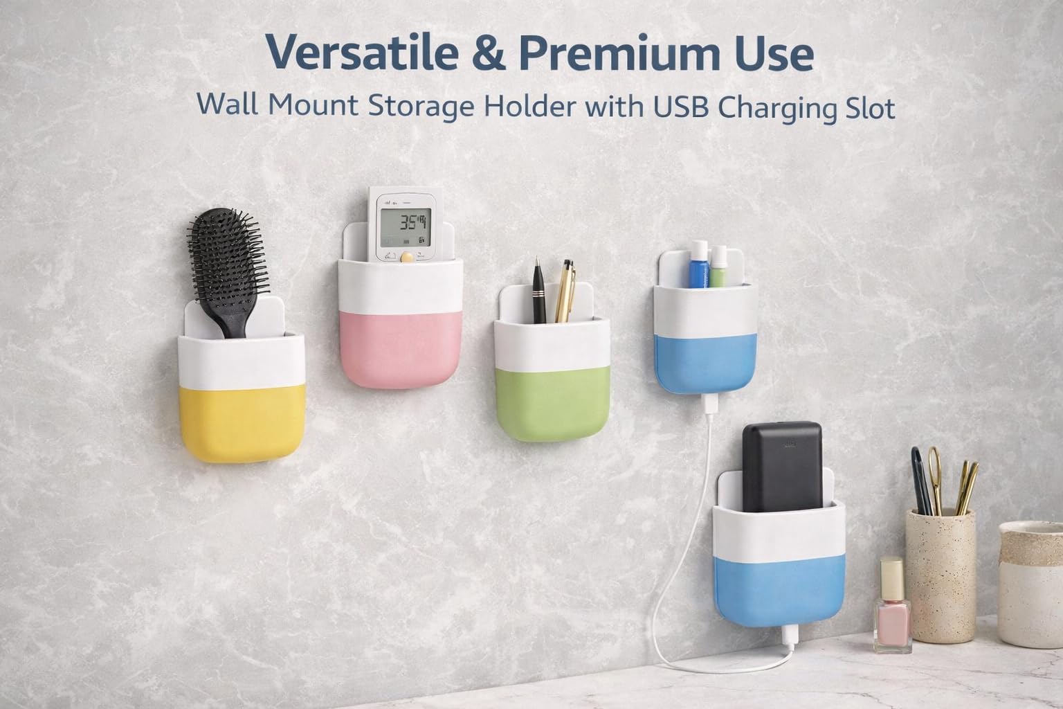 - VERSATILE WALL MOUNT HOLDER: Multi-functional adhesive organizer designed to hold remote controls, mobile phones, stationery, and bathroom accessories, keeping your space tidy and organized