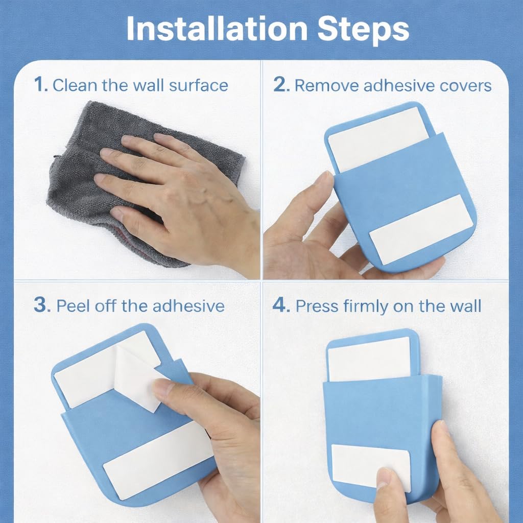 - EASY ADHESIVE INSTALLATION: Strong self-adhesive backing ensures tool-free mounting on any clean wall surface – simply clean, peel, and press firmly for secure attachment